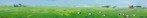 2018Akkers met graan en korenbloemen aan de rand, koolzaadvelden en andere gewassen, koeien in het land; dijk op de achtergrond.